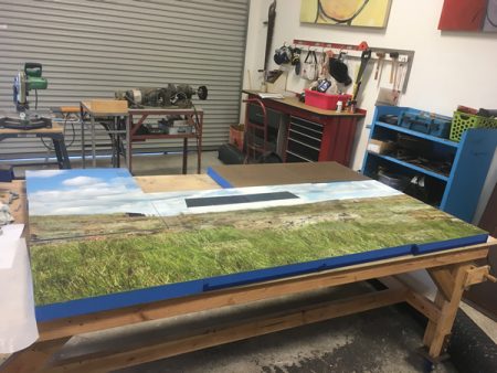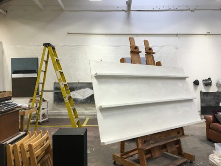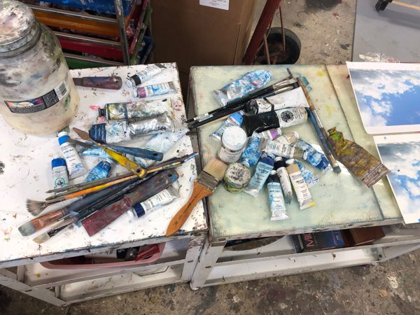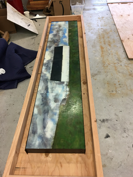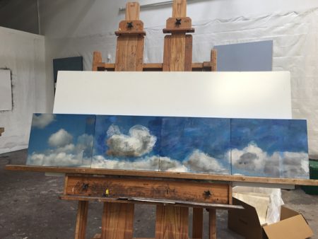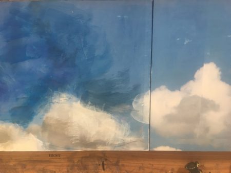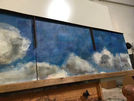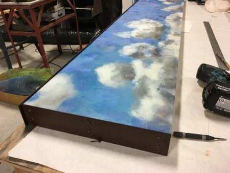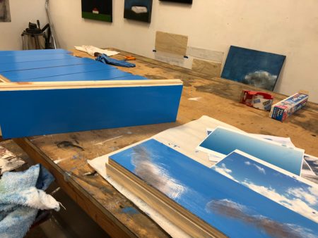 Like a previous post I did about its companion piece in the Venice show, I’d like to show you some of the making of this piece. Below you’ll find plenty of pictures and descriptions. Click on the first photo and you can scroll through the rest of them with captions. More photos of this and other pieces in the Skies series can be found here.