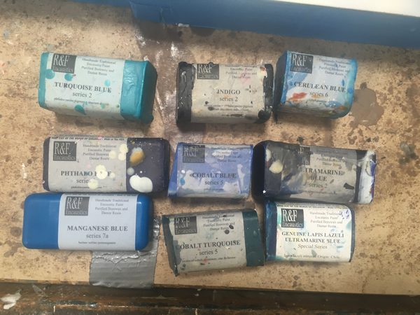 For instance, here’s an encaustic piece from 2017 that I recently reworked to heighten the color. I honestly don’t know if it’s better now or not. But it’s different and I’m enjoying it at the moment.