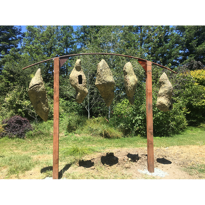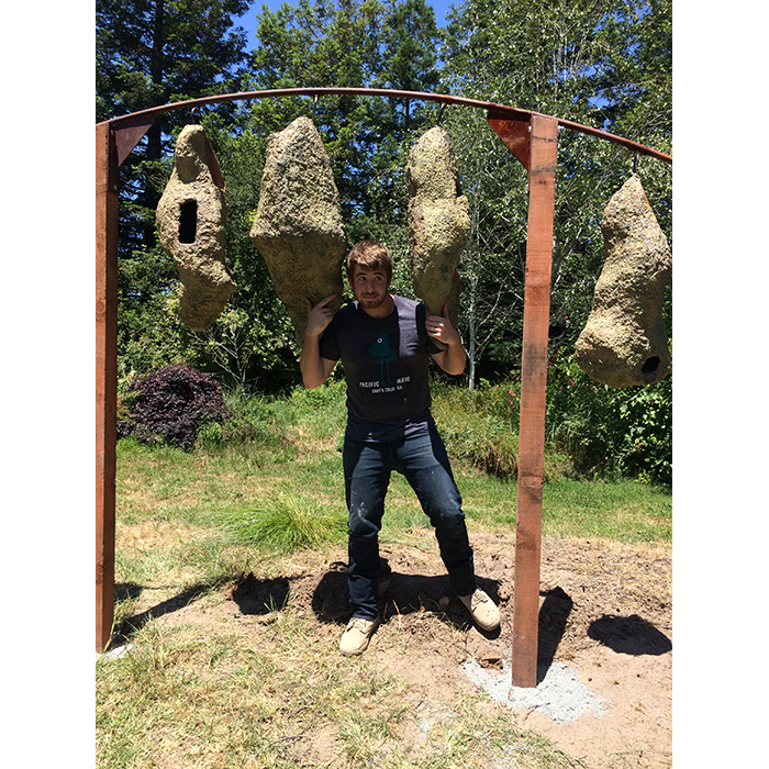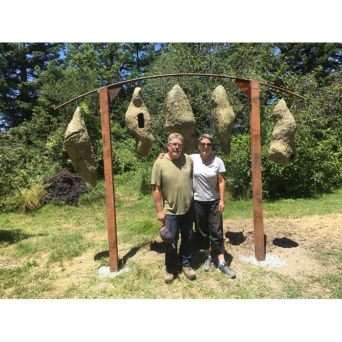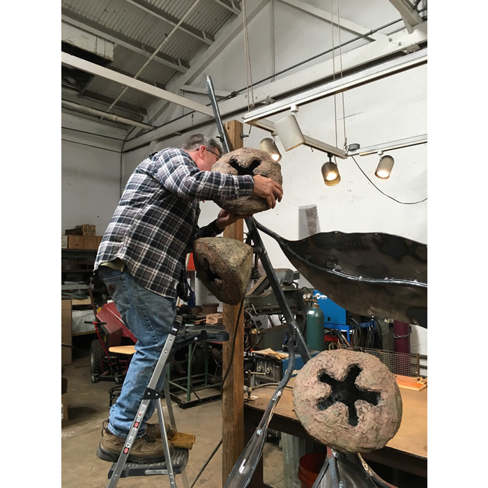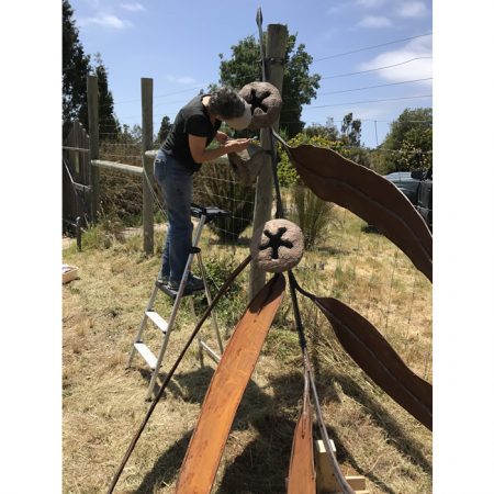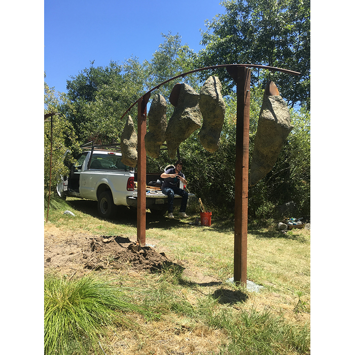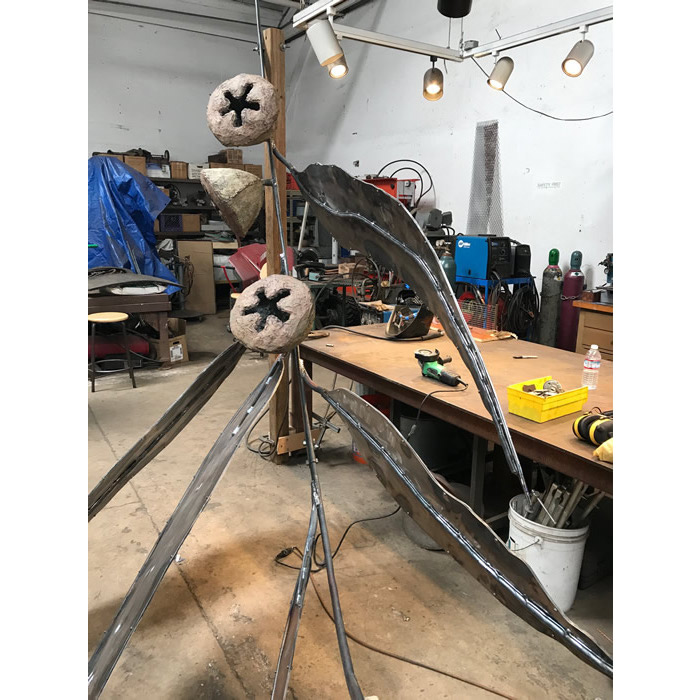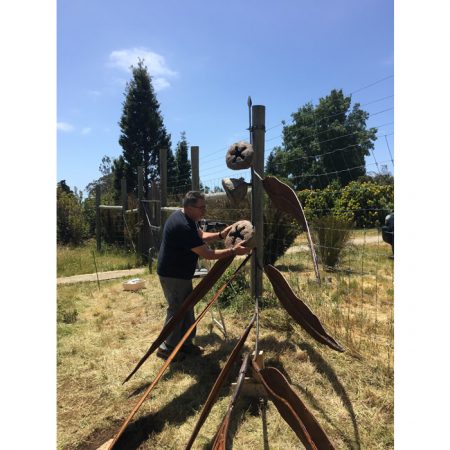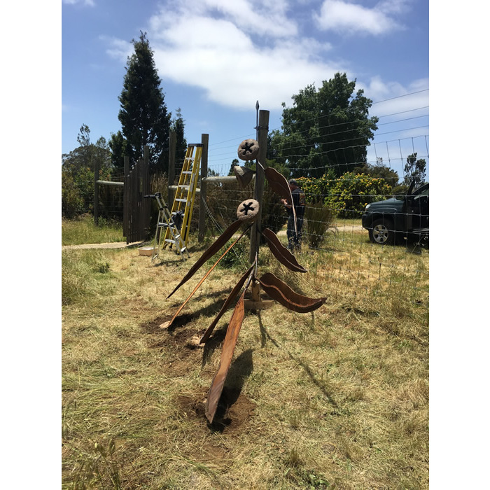 Another collaborative sculpture: this time with Jamie Abbott, my studio neighbor. We are frequently in and out of each other’s studios and often discuss our work with each other. We’ve often thought that a collaborative effort might be interesting because of the parallels that we see between our work. We settled on a collaborative effort for Sculpture Is: 2017 In The Garden at Sierra Azul Nursery in Watsonville.
