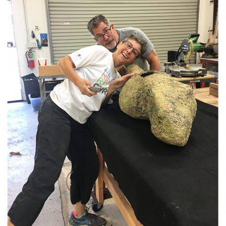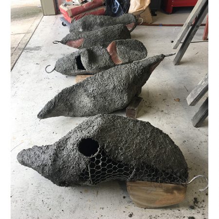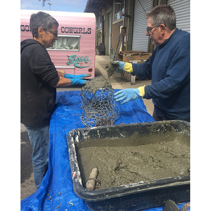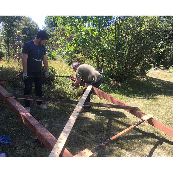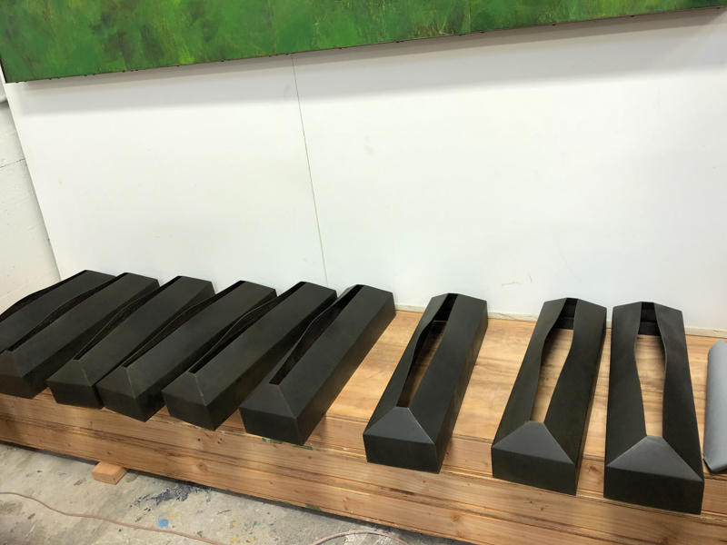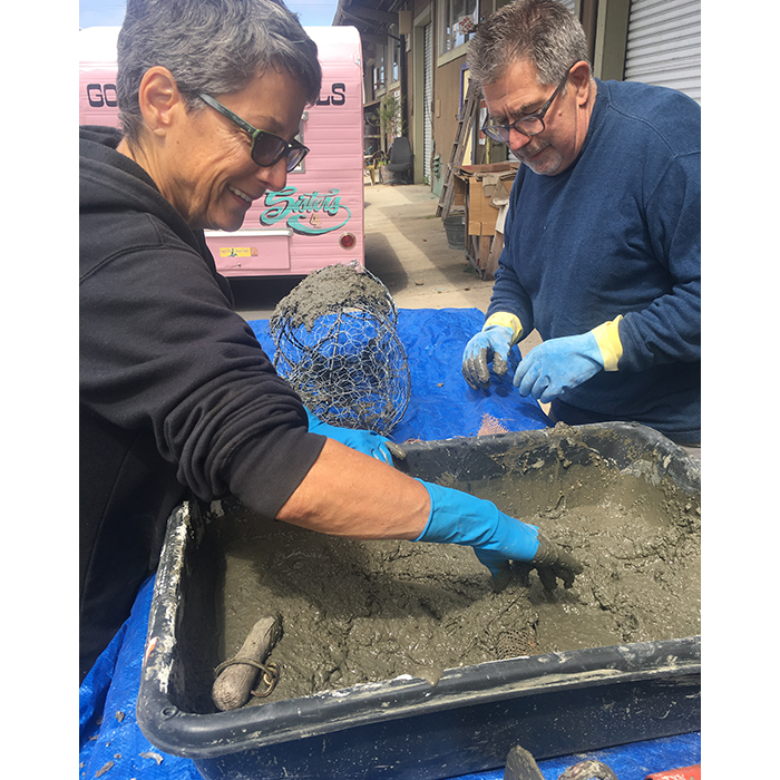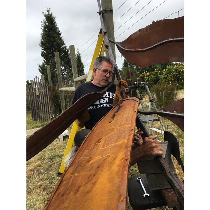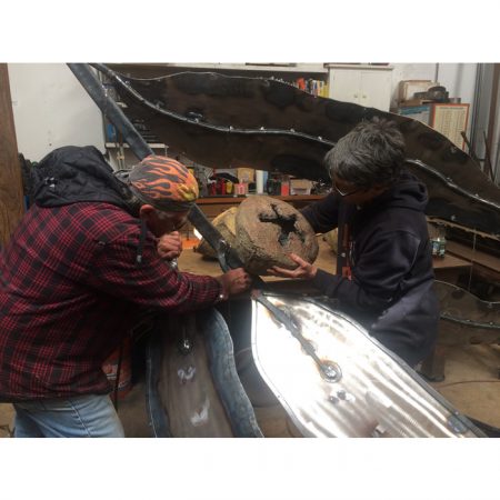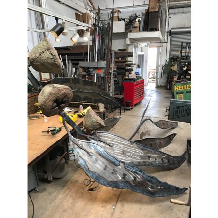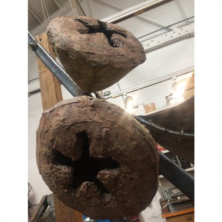 Another collaborative sculpture: this time with Jamie Abbott, my studio neighbor. We are frequently in and out of each other’s studios and often discuss our work with each other. We’ve often thought that a collaborative effort might be interesting because of the parallels that we see between our work. We settled on a collaborative effort for Sculpture Is: 2017 In The Garden at Sierra Azul Nursery in Watsonville.