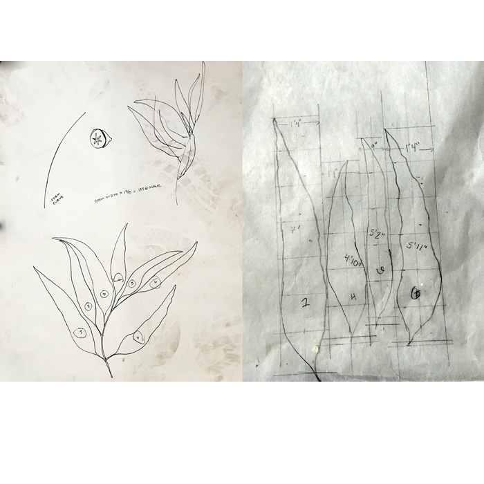We started by thinking about forms that we are each drawn to, trying to recognize where they overlap. But we also had to be careful to not veer too much in one direction–towards Jamie’s forms or towards my forms–because this is first and foremost a collaborative effort. In the best of all possible worlds, we would each learn something new in the process, and see something through the other person’s eyes. It’s the magic of collaboration…becoming tuned in to the way that another artist sees and thinks about the world. We collected some photos of chrysalises because those sorts of closed forms would make sense within the garden setting of this show.