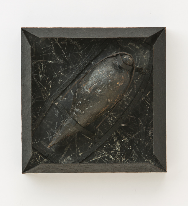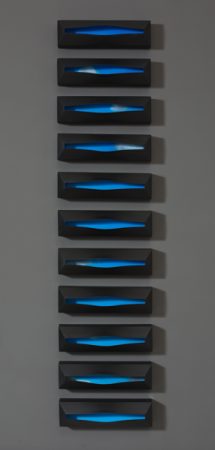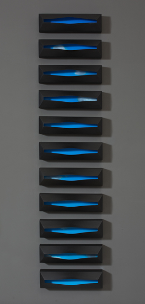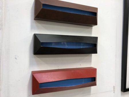 The Primaries, oil on panel with painted steel frame, 22″ x 12.5″ x 4.75″, 2018, private collection
