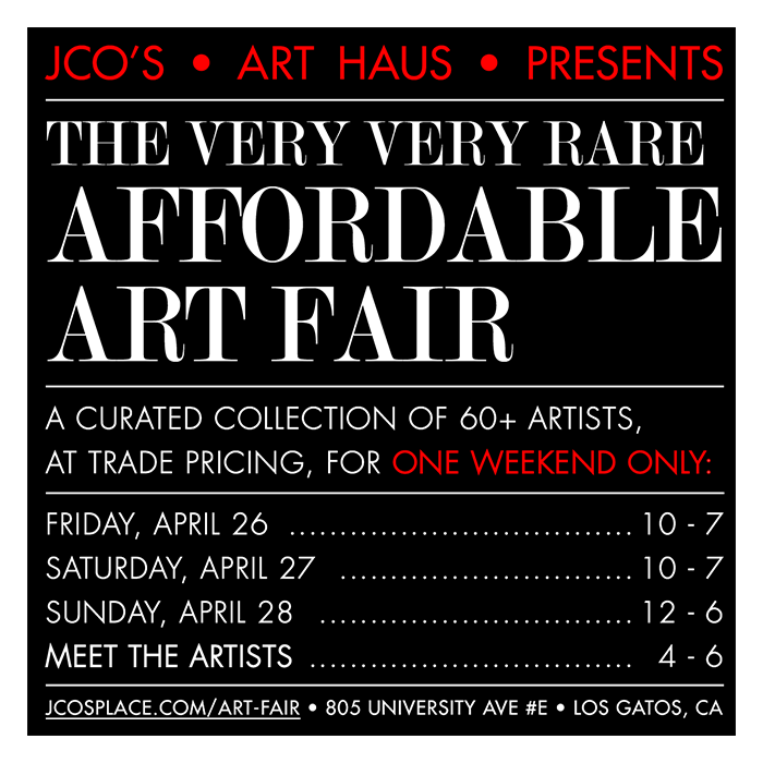 Coming soon…and you’re all invited! I have 18 paintings included in The Very Very Rare Affordable Art Fair, a few of which can be seen here. There are many other artists as well, including Susana Arias and Jenni Ward, two of my Mission Industrial studio neighbors. We’ll all be there for the Meet the Artists closing reception, April 28, 4-6pm.