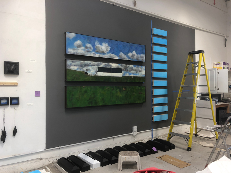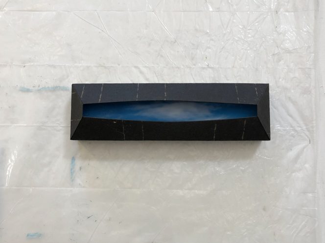 These two pieces are a good example. In Making My Own Paradise (left), I divide the landscape into into three sections: earth, horizon (populated with a man-made structure) and sky. It’s like a drafting view of an object, in a sense, but the object is the entire landscape. I’ve edited out anything that is unimportant in my description of the earth, the horizon, and the sky. In Nothing But Blue Skies (right), I show specific and small areas of sky inside each box. Look here, and now here; look at this and now this. These pieces are currently in an exhibition put on by the European Cultural Centre titled PERSONAL STRUCTURES – Identities in the Palazzo Mora in Venice, Italy, in conjunction with the 2019 Venice Biennale.