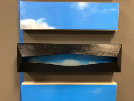 This year, I worked with the same themes and materials but in a different fashion. Again, there are birds and skies. Technically these are two series, but, again, they hang together. Buyers can mix and match pieces or select just one. The birds are titled North. South. East. West. and the skies are titled A View From the Other Side. I’ve included side-angle shots also to give a better indication of depth and shape. The series totals eight pieces at the moment: four skies and four birds. But I think I’ll continue to work on the ideas behind A View From the Other Side.