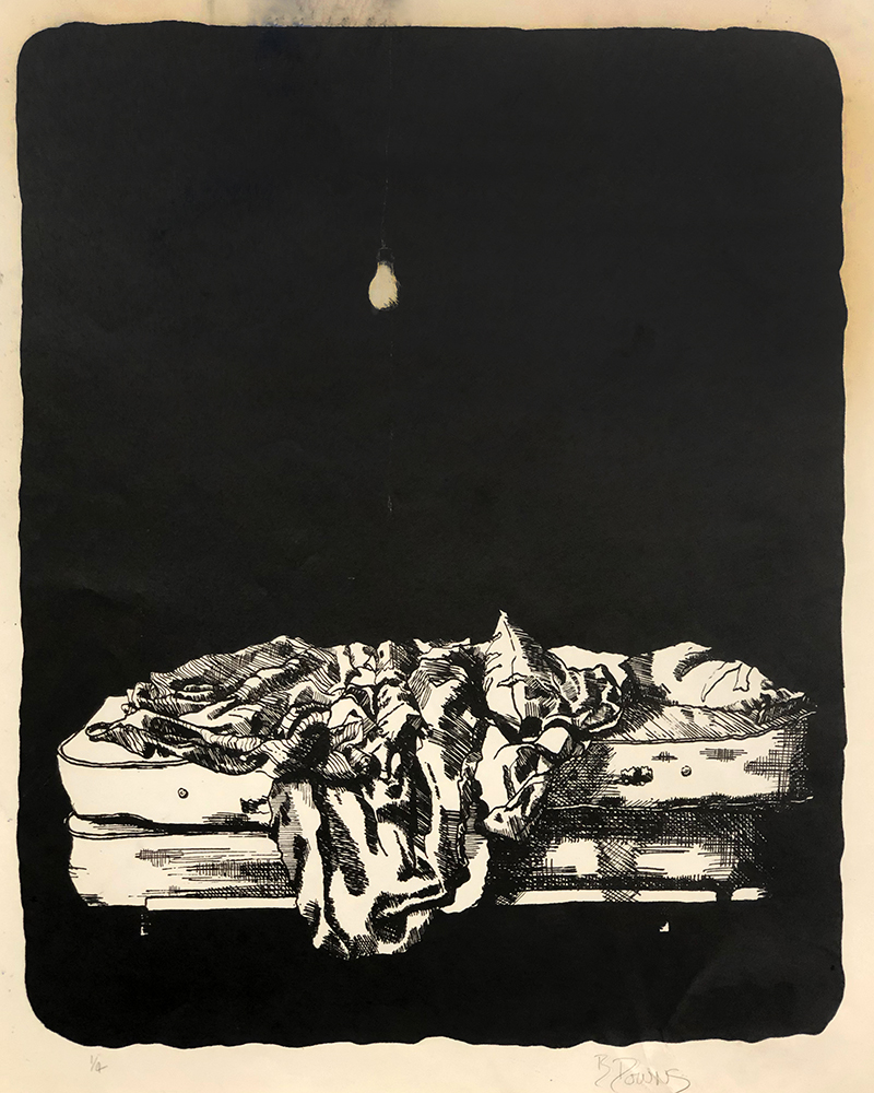 I always tried to keep my drafting job separate from my artwork, but when I look back at my drawings from those days I see quite a bit of draftsmanship in them. The influence is there, like it or not. Drafting rewired my brain for a certain sort of seeing and thinking. Here’s some early lithographs from my college days: