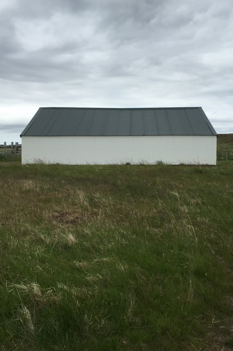 The barn is in Iceland, a land that truly embodies the powers of nature. The sky and land there slam together at an insistent horizon line, rendering human structures fragile and insignificant. When I’m in Iceland, I feel the growth and formation underfoot; Iceland is a baby in geologic terms. If I could live a millennium, I could see what it is becoming.