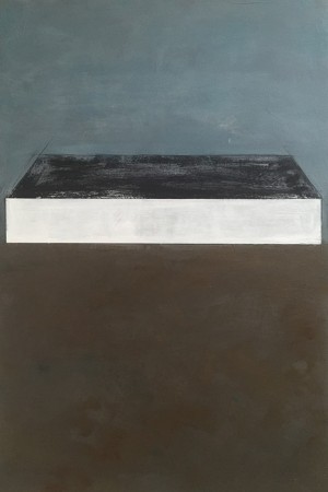 side view of Making My Own Paradise, Encaustic/Oil/Mixed-Media on Panel with Rust-Patina Steel Frame, 56″ x 81″ x 3″, 2016