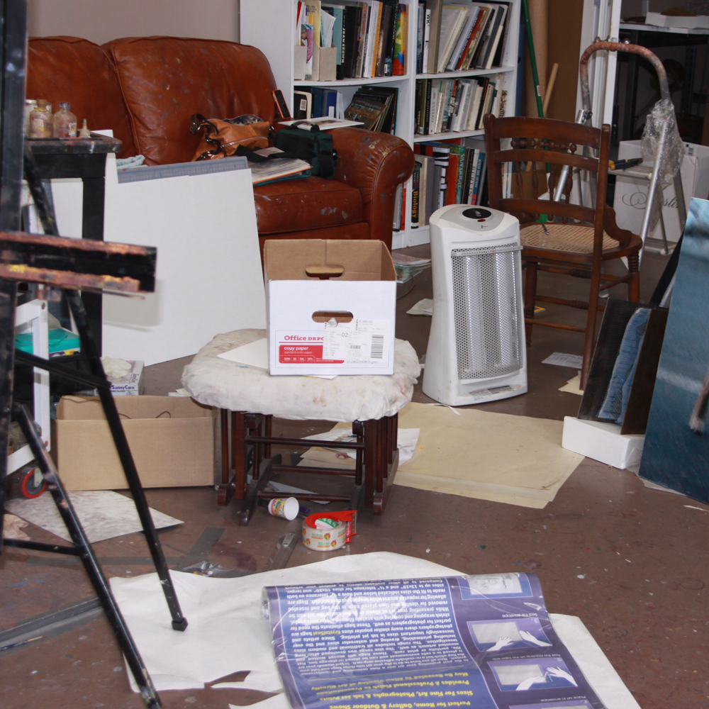After the flurry of activity finishing the 50 Daily Birds, I really did have to clean the studio. As I cleaned, I was able to clear my head from the last work and think about the next work. Here are some ‘before’ photos.