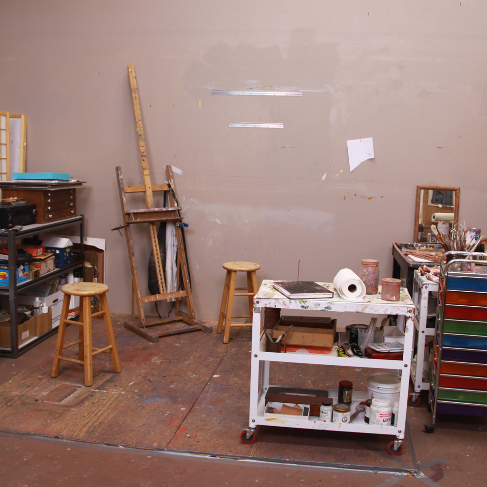 You could make them yourself if you’re handy with a saw and a drill, but I was busy moving into the studio at the time. I gave him a sketch of what I wanted, after looking at other people’s racks and scouring the internet for photos of studios that had painting racks in the background. They work great!