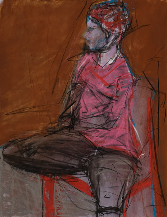 Untitled Drawing (Seated, Rose), Chalk Pastel on Paper, 26" x 20", 2010