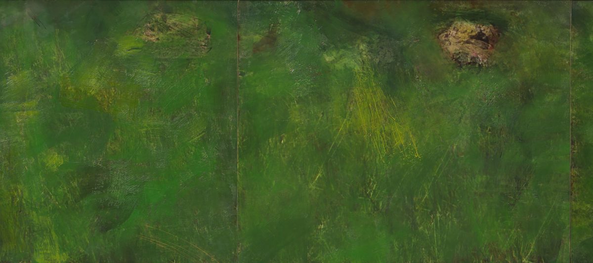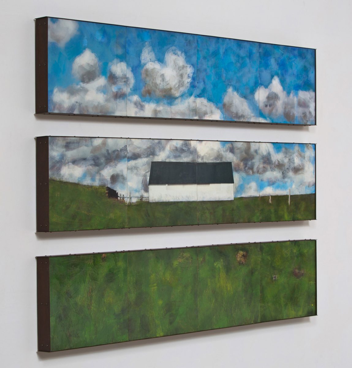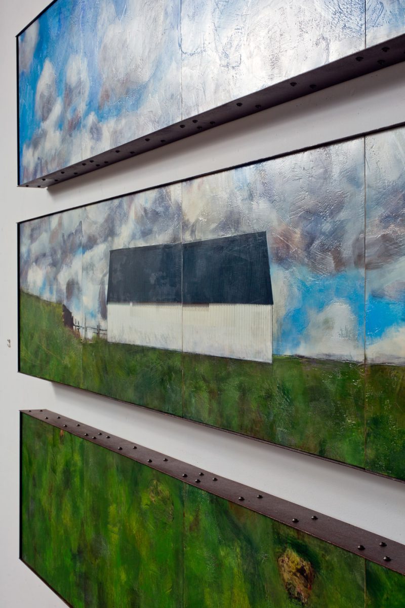 Making My Own Paradise, encaustic/oil/mixed-media on panel with rust-patina steel frame, 56″ x 81″ x 3″, 2016, private collection, photo by R.R. Jones