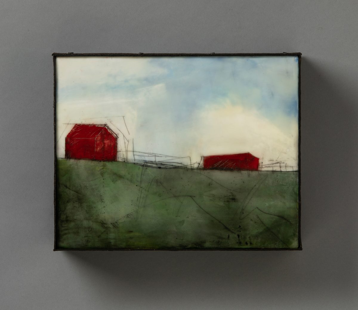 Another year, another TakeAways exhibit, a wonderful fundraising show for Pajaro Valley Arts. This year, I did encaustic-on-panel barns.
