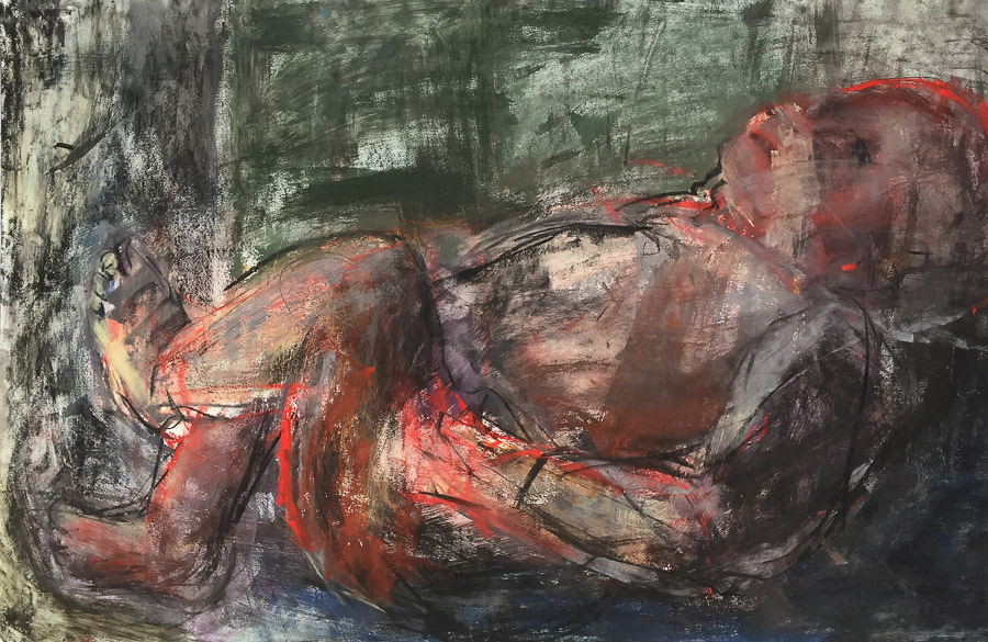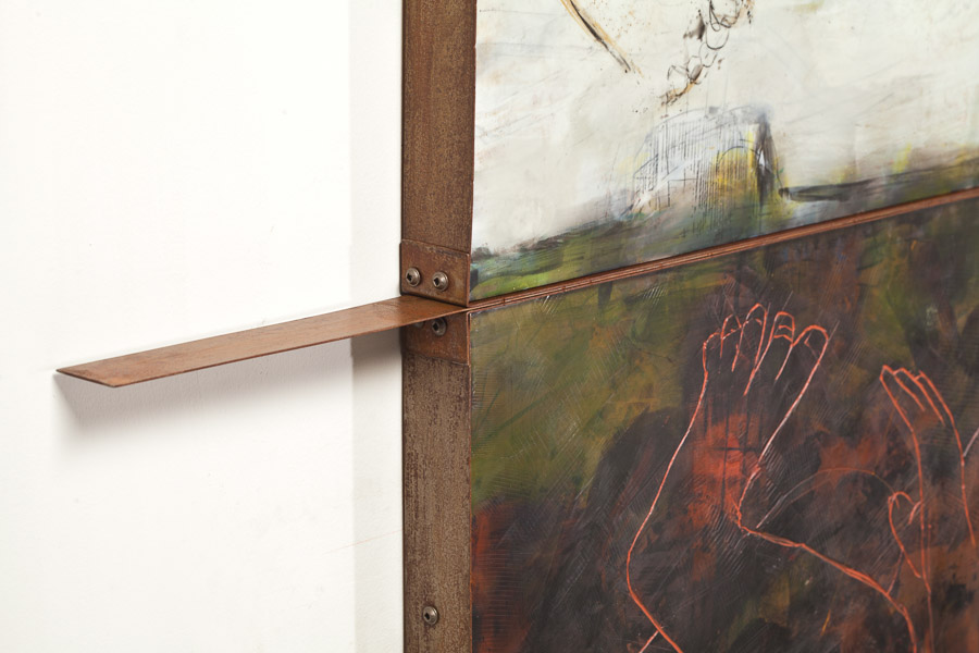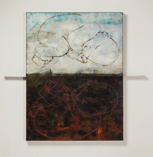 Concept Drawing for Baby Cage (I), chalk and charcoal on paper, 48" x 36", 2015Concept Drawing for Baby Cage (II), chalk and charcoal on paper, 108" x 52.5", 2015Curled Baby (II), mixed-media on paper, 40" x 26". 2014Untitled Drawing, Mixed Media on Paper, 40" x 26", 2014Curled Baby (I), mixed-media on paper, 26" x 40", 2014Iceland/Ísland (I), oil on canvas, 48" x 60", 2014After It Started, oil on canvas, 60" x 58", 2014Child Drawing (II), mixed-media on paper, 30.5" x 29.5", 2014Iceland/Ísland (II), encaustic/oil on panel with rust-patina steel frame, 42" x 48" x 3", 2014, Private Collectiondetail of Iceland/Ísland (II), 2014, Private Collectiondetail of Iceland/Ísland (II), 2014, Private Collection
