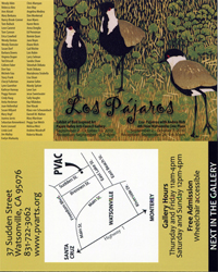 Two exhibits are holding receptions on the same day, September 12. I’ll be at Los Pájaros first, which is an exhibit of bird-themed art at PVAC in Watsonville. I have two encaustic pieces and one sculpture in this show.